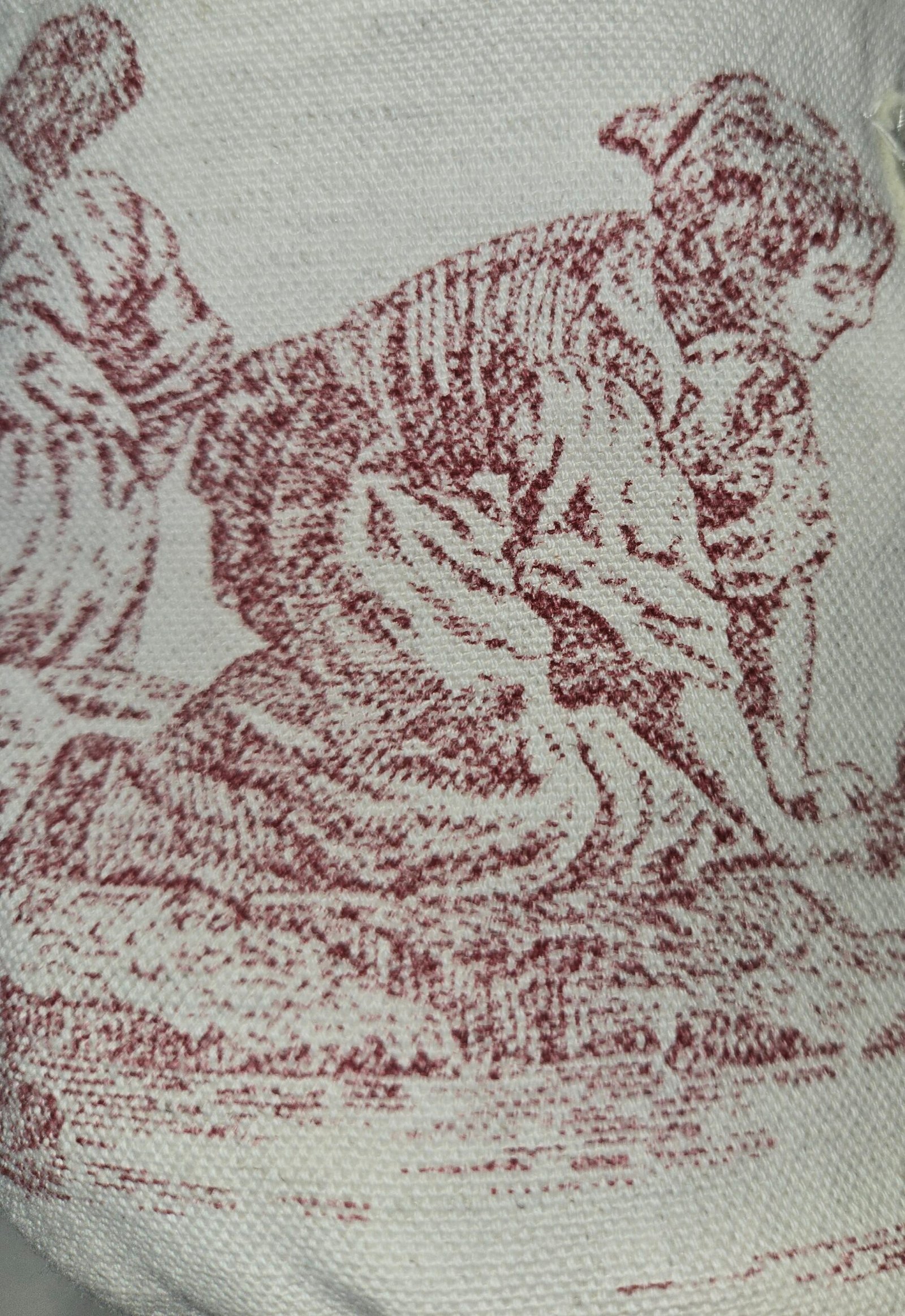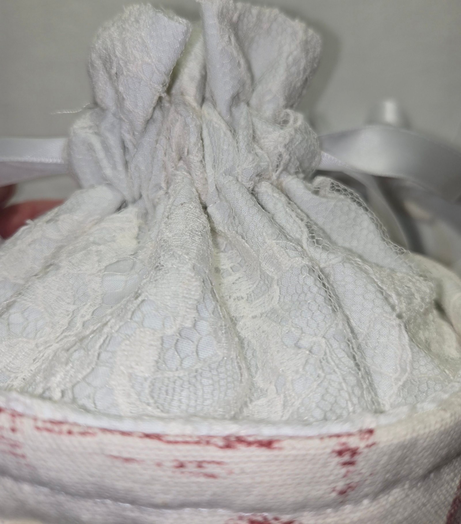 Extérieur : toile de Jouy upcyclée avec dentelle