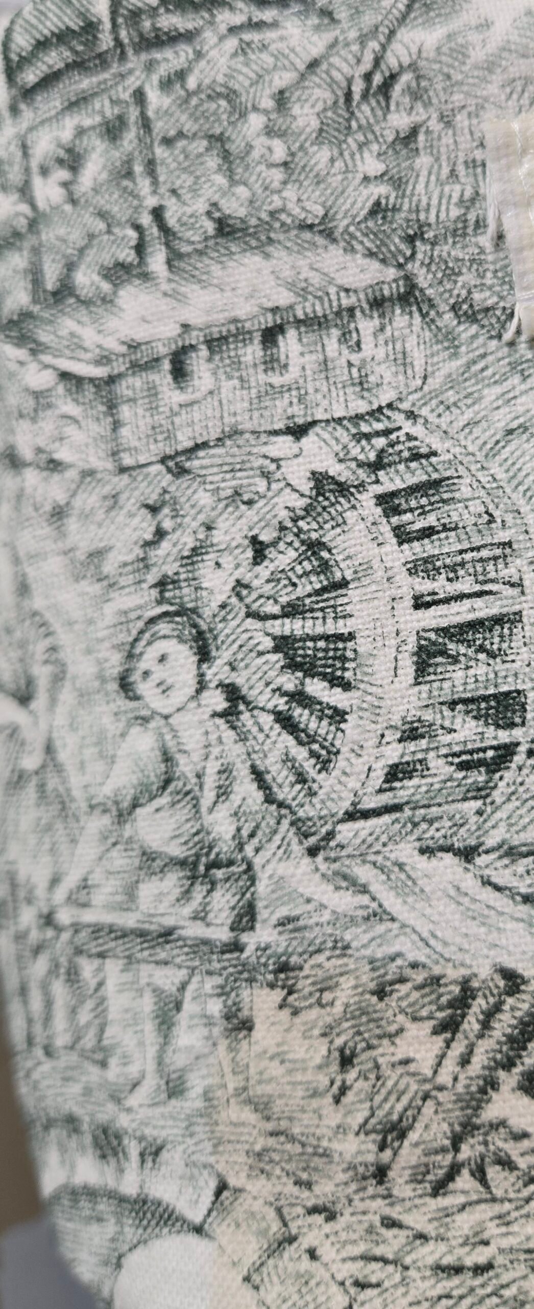 Extérieur : toile de Jouy upcyclée avec dentelle